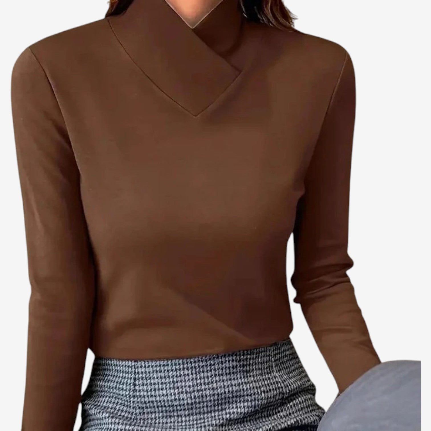 Il taglio sofisticato di questo top cattura immediatamente l'attenzione con il suo caratteristico collo a lupetto e la vestibilità elegante e sartoriale. Realizzato in un materiale morbido, offre una sensazione di morbidezza e comfort, offrendo al contempo una silhouette raffinata che delinea la parte superiore del corpo. Questo capo evoca una sensazione di eleganza discreta e sicura, conferendo una finitura raffinata a qualsiasi outfit senza sforzo. Il suo design versatile e le opzioni di colore classiche si fondono perfettamente, rendendolo un capo essenziale sia per gli ambienti professionali che per i momenti casual più eleganti.